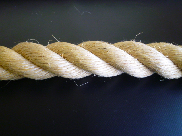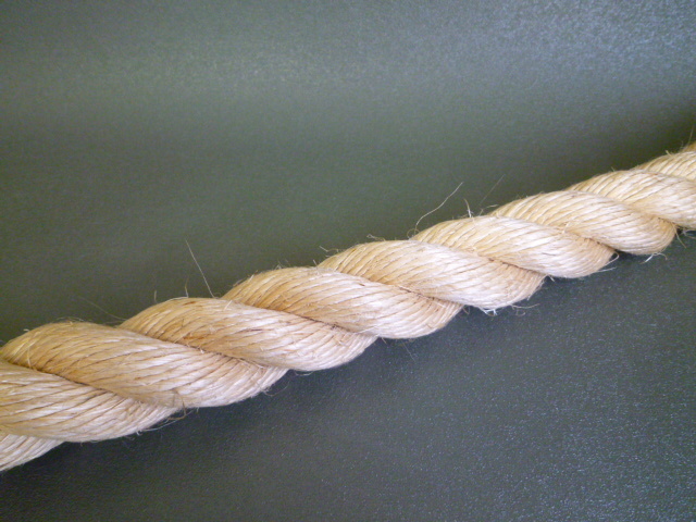 通称マニラロープ(現在では本マニラ麻のロープは少なく、大半がサイザル麻を染めている) 細物 緑化資材 園芸資材 固定や柵ロープに 太物 インテリア 綱引きロープ 遊具ロープ等に 船舶関係では、タールで染めた(タールロープ)もあります。