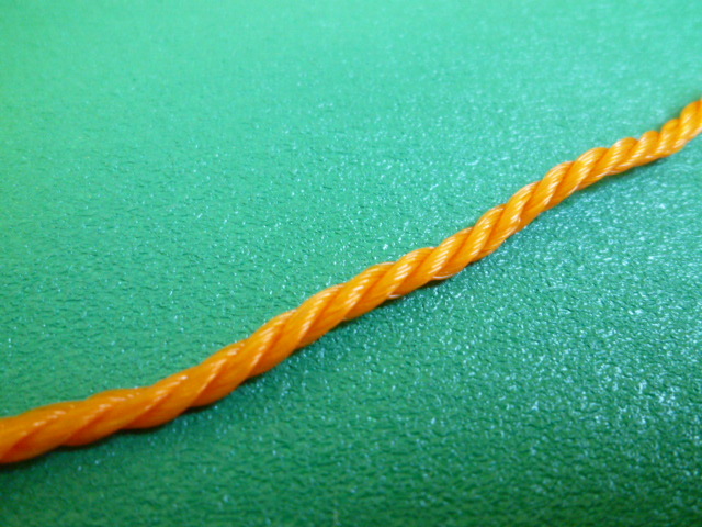 農業用ロープやネットの補修ロープに使用されています。 補修用によく使われるものなので、ロープ巻きより扱いやすいと言う事で直径3mm以下はトワイン巻きになっています。合繊繊維ロープの中では軽くて、比較的安価である。