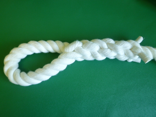 クレモナロープ20mmを使用。耐久性、強度に優れています。 手触りが綿に似ているので適度な柔軟性を持ちとても扱いやすいです。